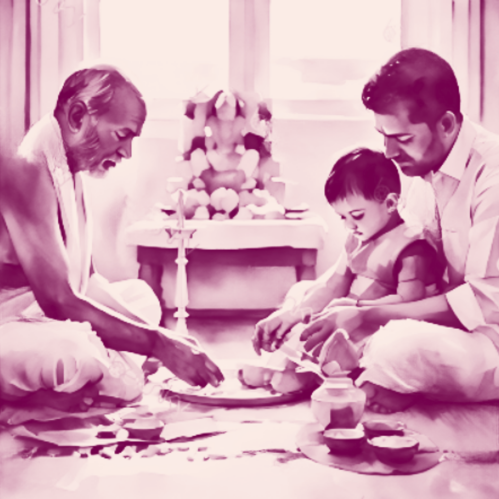 Telugu Aksharabhyasam (Vidyarambham) with samagri included—available across Telangana & Andhra Pradesh. Karishye helps with muhurtam, assigns a verified Telugu pujari near you, and brings the essentials so your child’s first-letters ceremony is simple, sacred, and apartment-friendly.