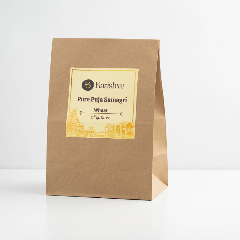 In worship, Wheat is often offered as naivedyam to deities, representing gratitude for sustenance and well-being. It is also used in preparing prasadam, which is distributed among devotees as a sacred blessing. In certain rituals, wheat is offered to planetary deities and used in charitable donations, believed to bring good fortune, stability, and spiritual growth.