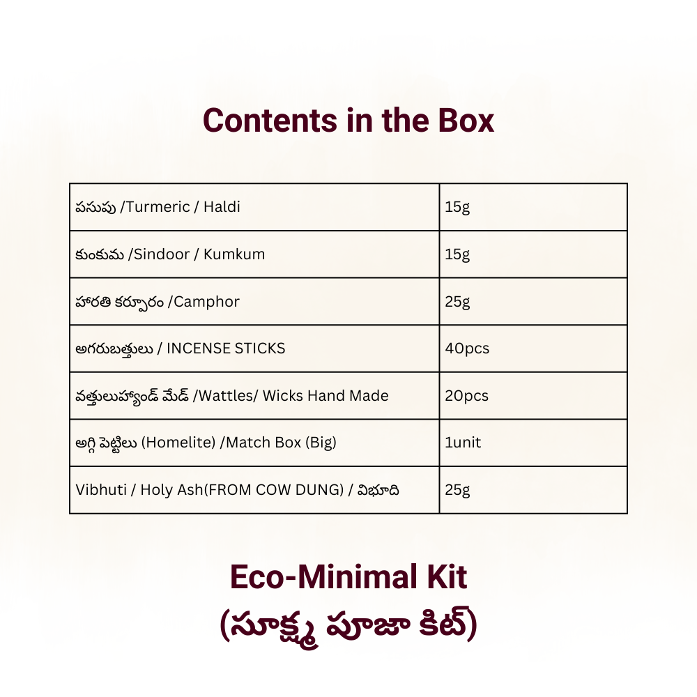 Ideal for regular puja in our puja mandiram, this kit ensures that our home is always ready for devotion.