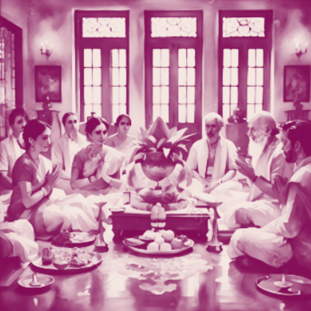 The full sequence of 16 upacharas refines attention and bhakti, keeping participants anchored in the presence of the Devi.