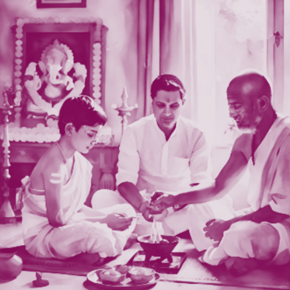 First hair removal/tonsure (if your family tradition observes it with Upanayanam). Emphasizes shedding old impressions and committing to a cleaner, disciplined life.